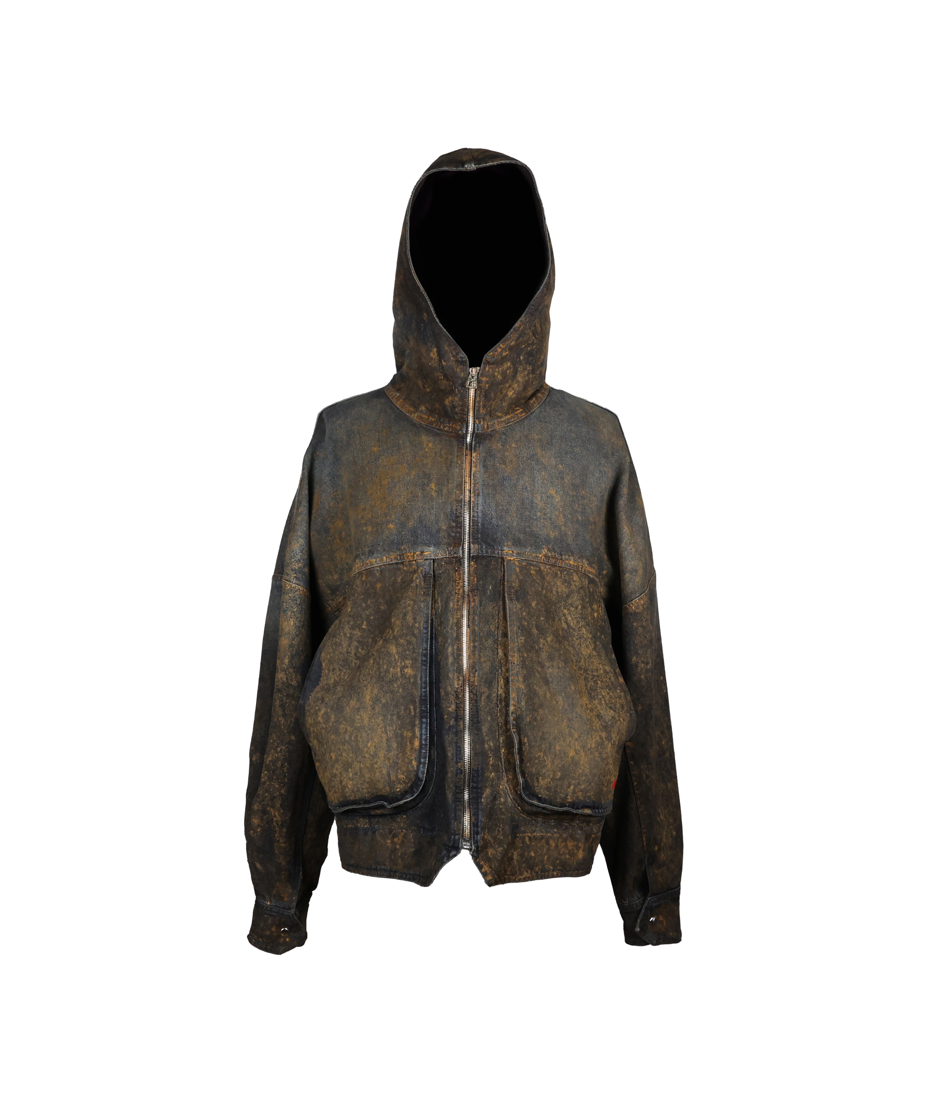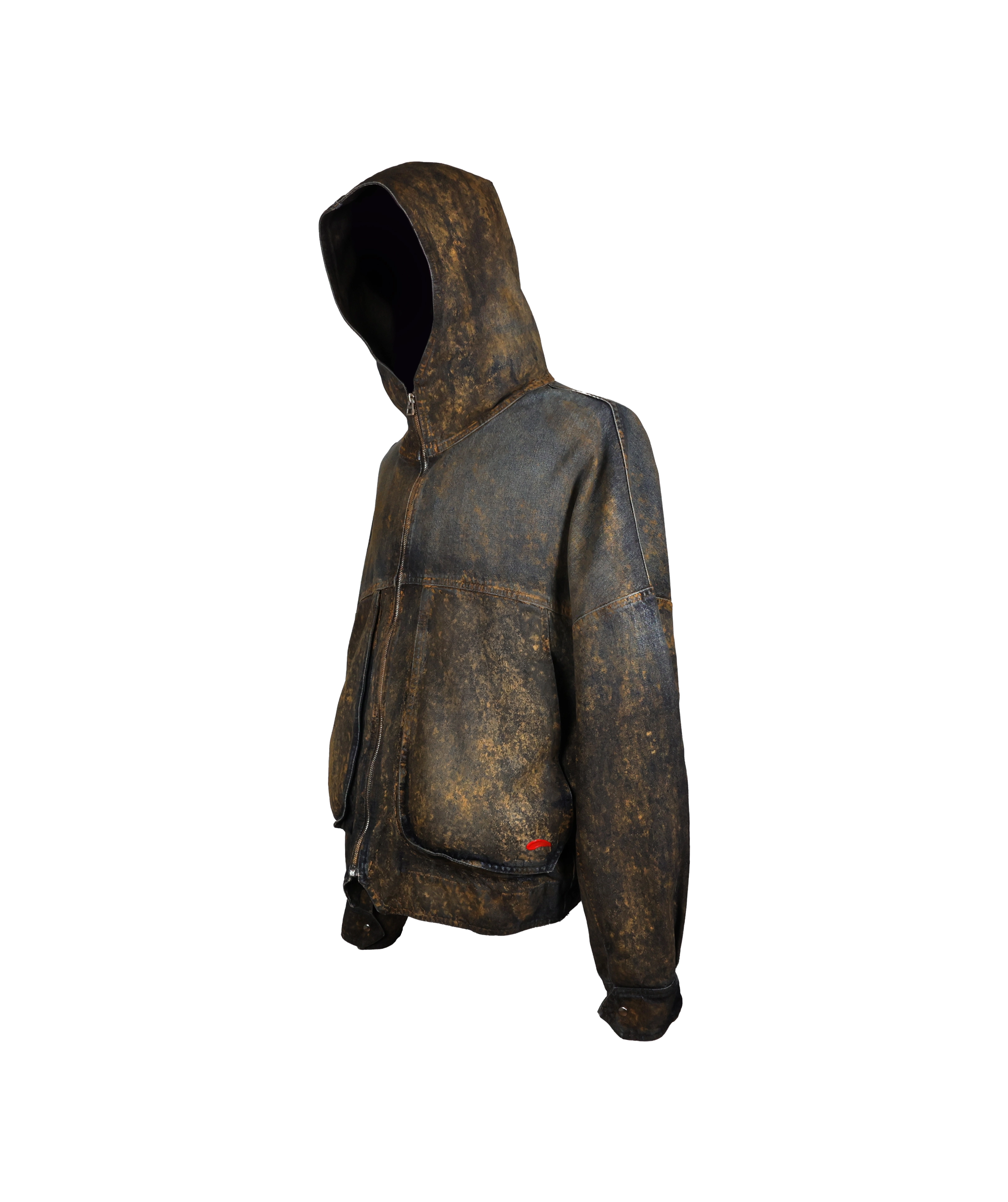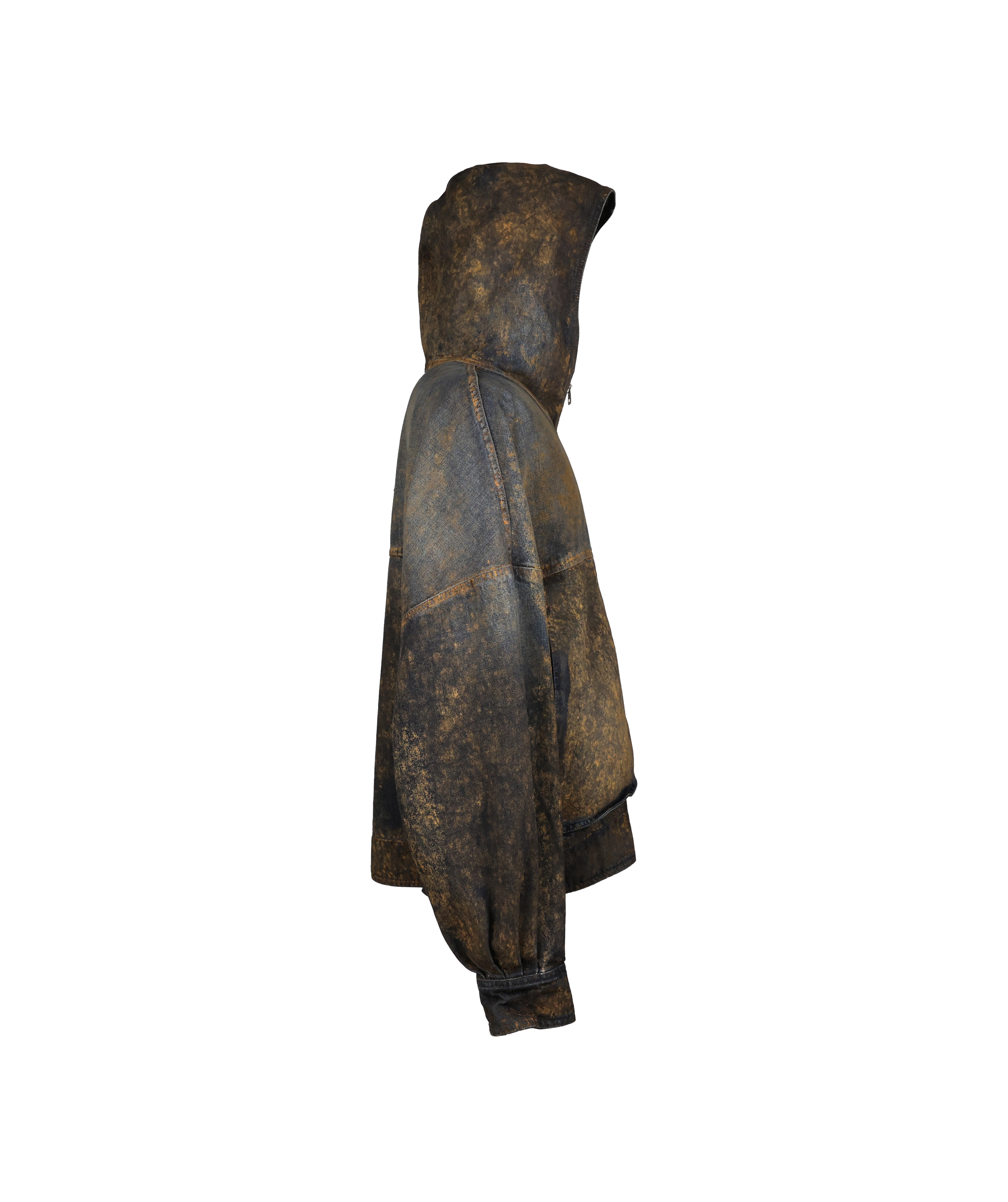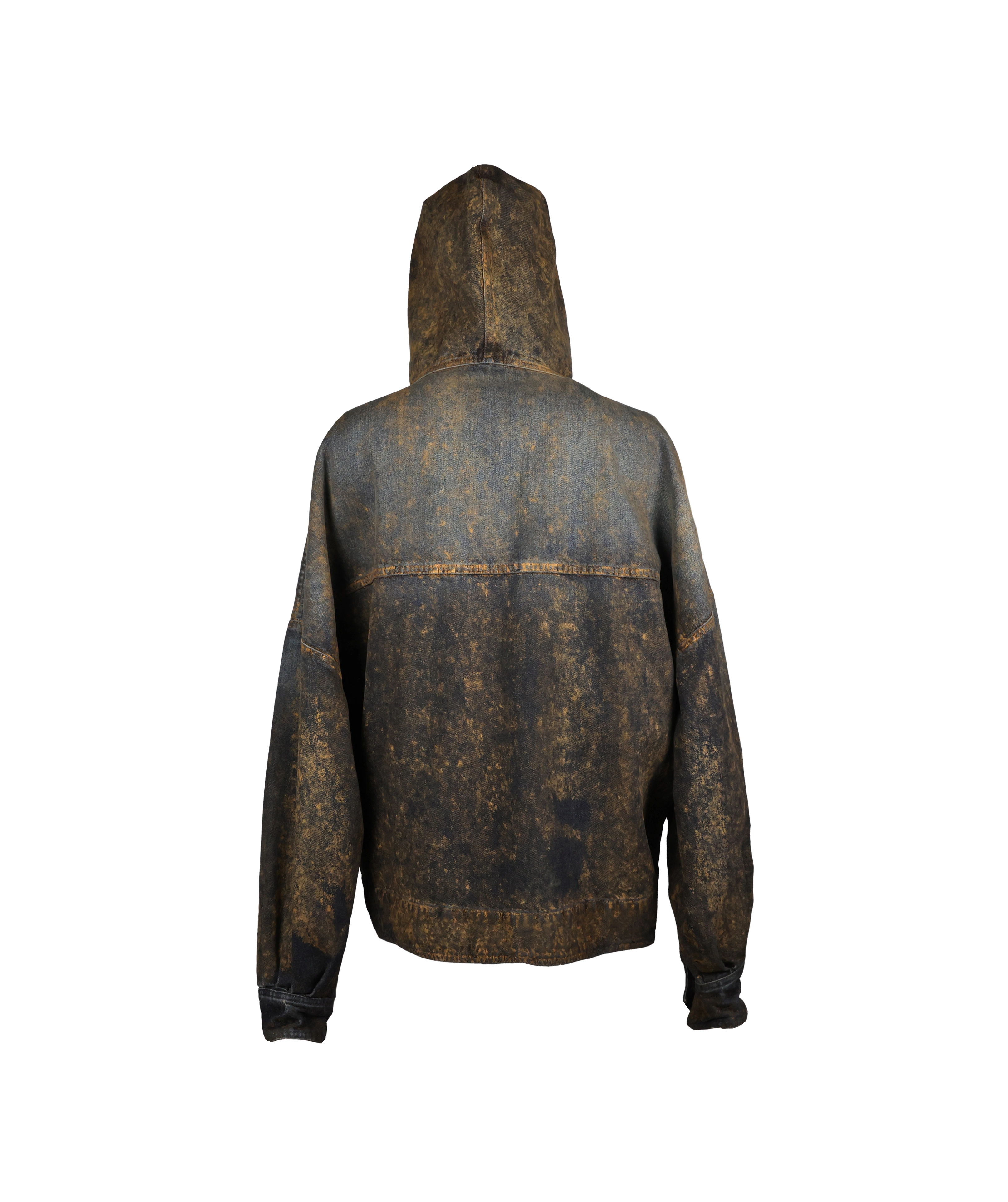 Giacca denim sabbiata con cappuccio